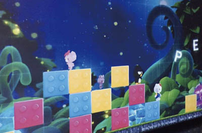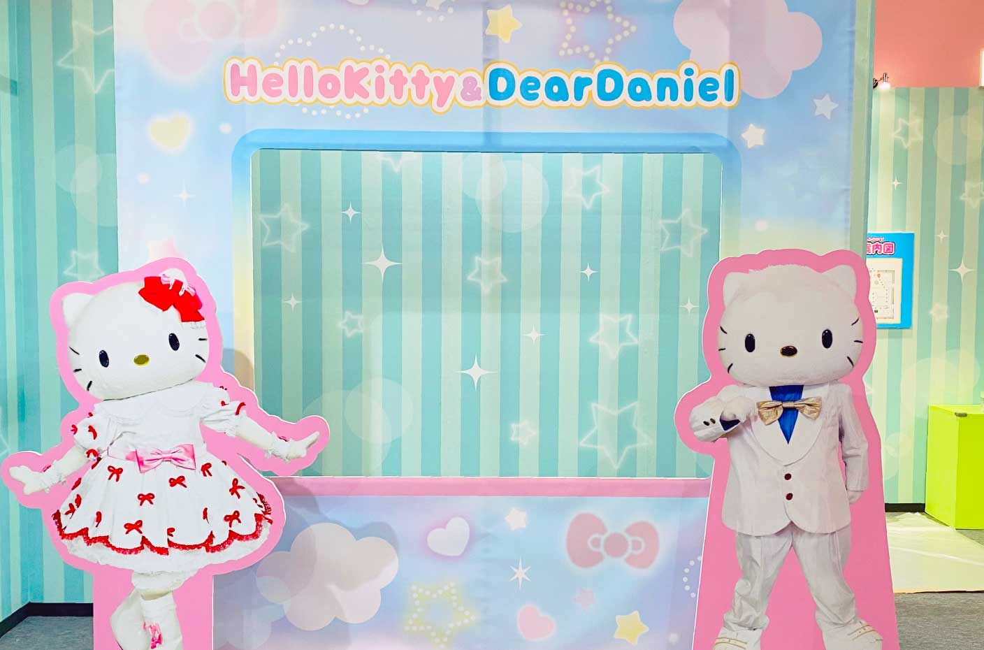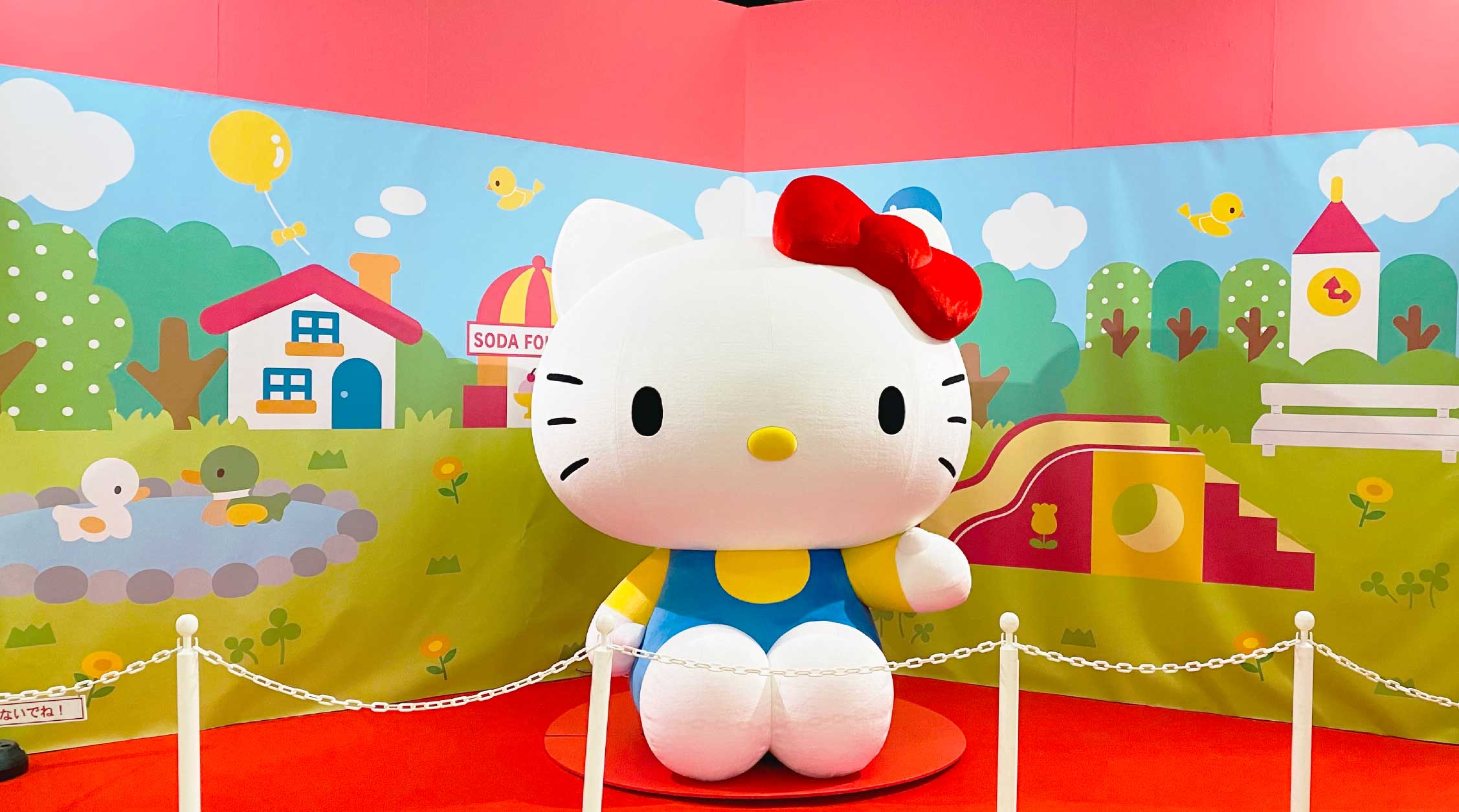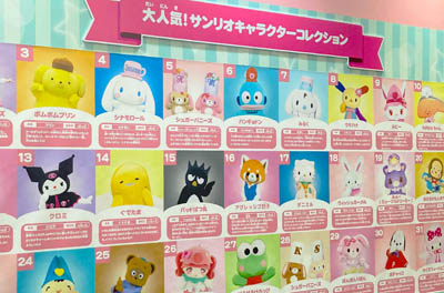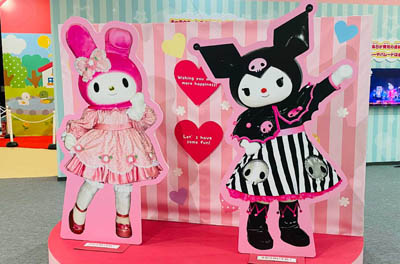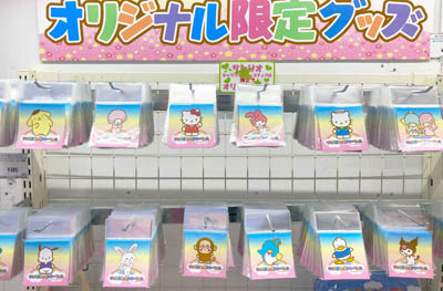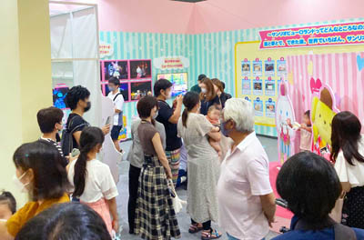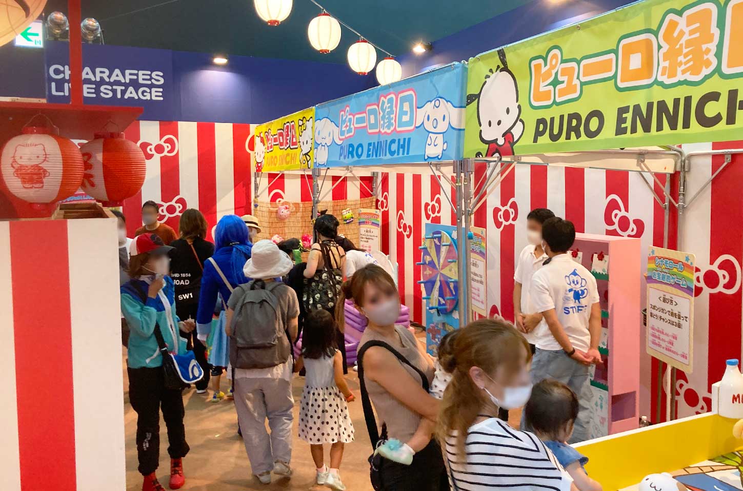 大きなハローキティ提灯が目を引くレトロな縁日ゲームエリア。キャラクターがデザインされたゲームに挑戦して高得点を目指そう! (必ず景品がもらえるよ!)