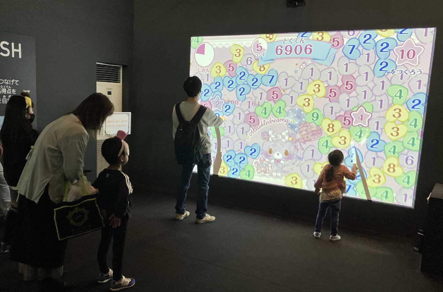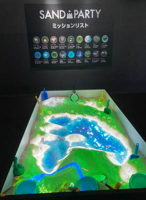 頭と体を使って遊べるデジタルアクティビティ! 砂場に隠れた宝物を探す「SAND PARTY!」 友達と得点を競う「NUMBER SPLASH」自分で色を塗った力士をバトルさせる「PAPER RIKISHI」など、最新VRゲームを体験してね! (協力:リトルプラネット)