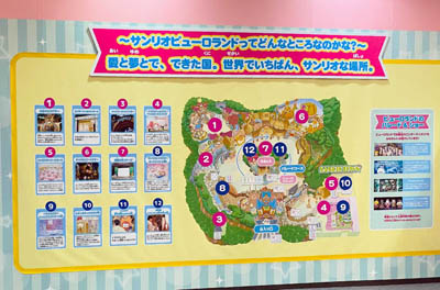サンリオピューロランドの紹介や人気キャラクターたちのプロフィールなどわくわくドキドキが止まらないオープニングゾーン! キャラクターの人気投票もあるよ!