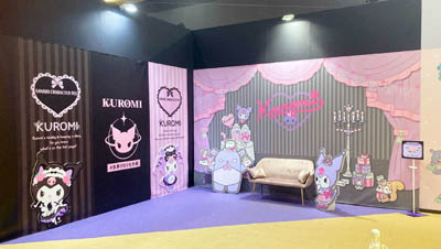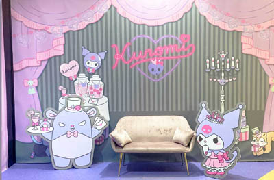 クロミファン必見!メイド姿が最高にかわいいクロミのパネルやソファに座ってクロミたちと写真が取れるフォトスポット! クロミ色に染まった空間でお気に入りの写真を撮ってね♪
